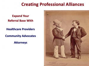 Step three is professional alliance referrals. Some doctors favor personal injury and cater to attorneys while others enjoy sports and tailor their practice towards sports venues while some enjoy a cozy relationship with their medical brothers and sisters. Regardless how you practice the game is the same, there is a symbiotic relationship between allied professionals and your office and once established the flow of new patients keep coming. We'll get more into this next week