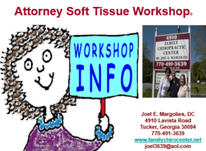 Don’t neglect marketing to your local attorneys. Call them and create a database of e-mails and websites and be sure to include their paralegals that often make the referrals and send timely newsletters and better use your office for a Soft Tissue injury workshops geared to the attorney and their staff. If you need one, I have a fantastic Powerpoint presentation called the Attorney Workshop that I will download to you for $60: joel3639@aol.com