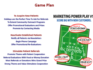 There is a game plan. Regardless how busy you are there is always room for more. Every car driving by, every vendor and neighborhood store and restaurant, every patient's family and friend need an adjustment. They just have no idea why. The medical and pharmaceutical world spend billions of dollars marketing their product so the general public see the value. Has chiropractic stepped up .. no.   Education is the answer and don't expect your staff to be part of the solution unless they are educated as well.