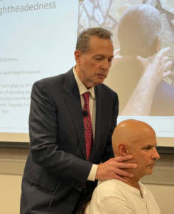 His commitment to his art was easy to see while he visually demonstrated and discussed his slide presentation that, due to time restraints, only covered the cervical spine, range of motion and cervicogenic headaches although if time allowed, he would have included the rest of the spine and extremities